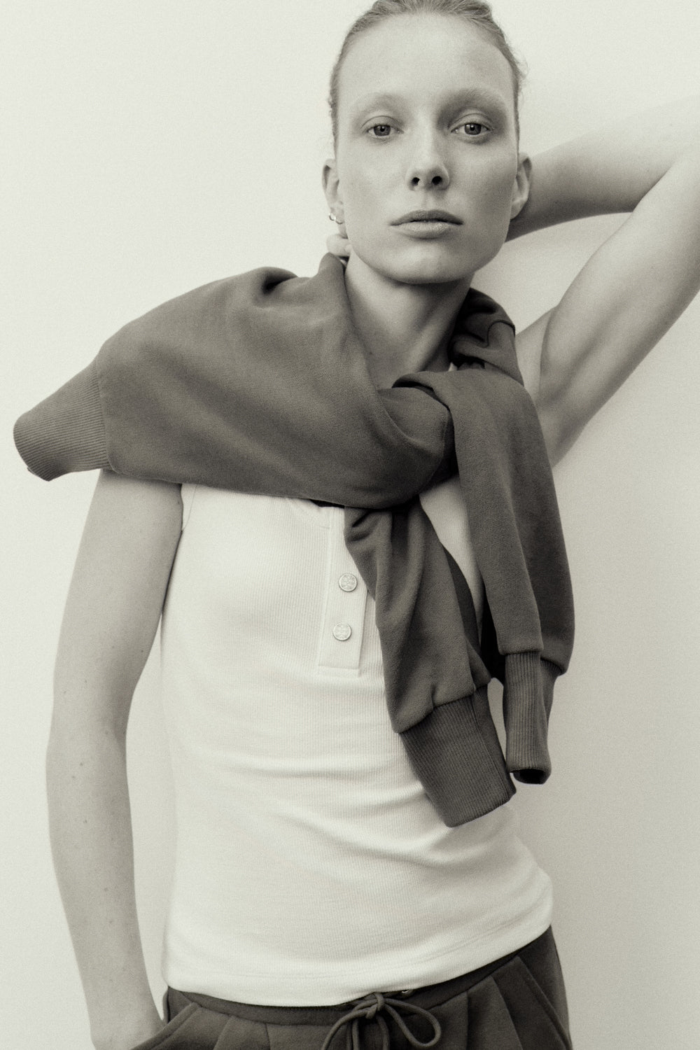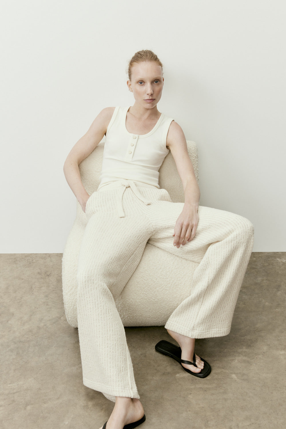 Natural fibres lead the collection. Cotton, organic cotton and viscose are selected for softness, breathability and durability. Every yarn and fabric is chosen to support movement, handfeel and wear over time.